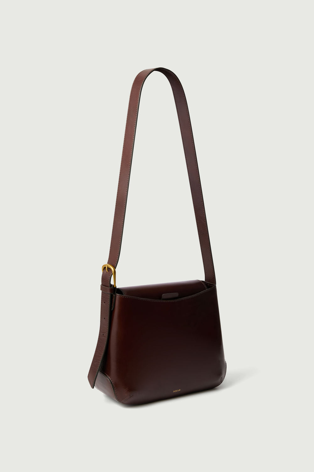 - Glossy Brown Leather Shoulder Bag